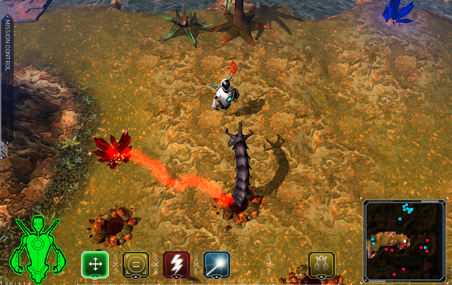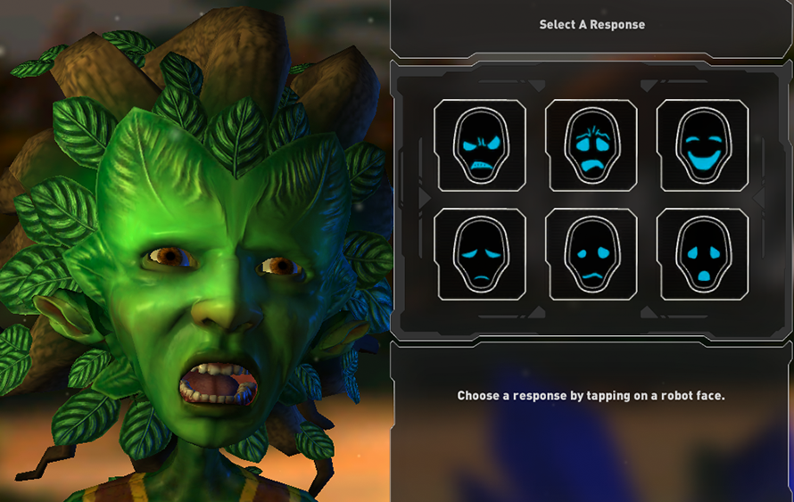 As a marooned robot explorer on a distant planet, you must engage with the local aliens in order to repair your internal systems and send a message to Earth. To communicate with the aliens you must first understand their emotional cues and earn their trust with positive social interactions. Beware of obstacles and use defensive tactics against dangerous life forms to avoid certain destruction.