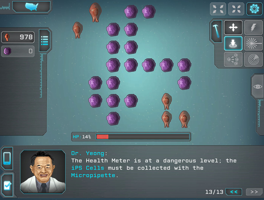 Progenitor X also takes a leap into the future and explores potential advances in Regenerative Medicine and Medical Device Engineering that will surely be of interest to the broad public. Using abstract, conceptual principles derived from Induced Pluripotent Stem Cell research, the player will develop a basic understanding of the process by which adult human skin cells are taken and reprogrammed to become one of over 200 different human cell types. The scientific content of Progenitor X is based on research being conducted at the Morgridge Institute for Research and the Wisconsin School of Medicine and Public Health.