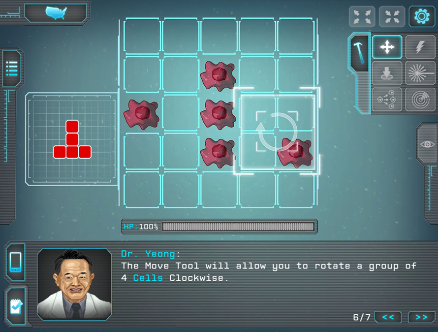 Progenitor X is a narrative-driven, turn-based, puzzle-solving game where the player will learn about the relationships between cells, tissues, and organs. This scientific concept is a core biology science standard taught from middle school to college. By employing turn-based puzzle mechanics, Progenitor X seeks to attract broad audiences from middle school through college, and teachers might use Progenitor X to teach everything from basic biology to advanced stem cell concepts.