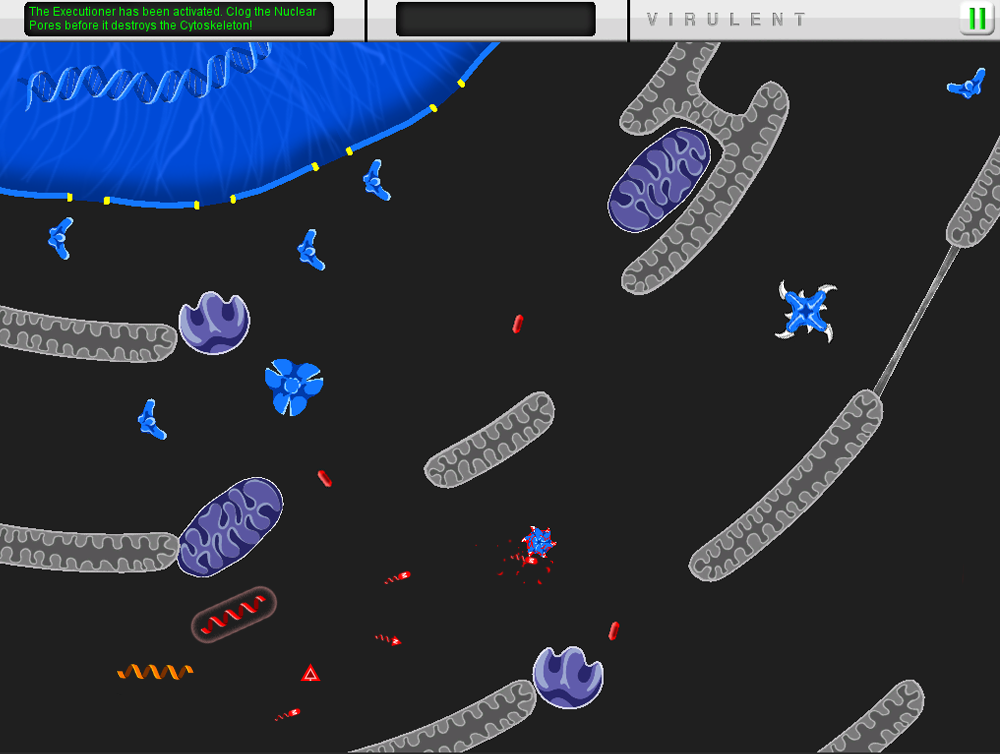Control "Raven" virus particles trying to infect, replicate inside of, and escape from a host cell. Fight off host and cellular immune responses with armies of viral proteins while stealing precious energy and production facilities to make more of yourself. You have numbers and speed on your side, use them wisely and recklessly.