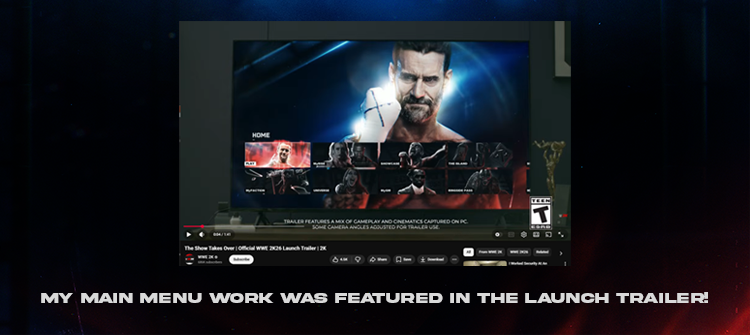 I once again had the pleasure of working on this year's WWE release . Similar to previous years I was major player in defining, documenting, and executing this year's aesthetic throughout the UI. This includes but is not limited to: being a major player in concepting, definine, and documenting the art style, implementing it in-engine and creating scalable pipelines that were then distributed for the rest of the team to use for their own skinning and implementation work. Creating high fidelity splash, assets, mockups, card series, vfx, shaders, robust animated sequences for some of the game's most high-profile features, and so much more. Shown here is only a tiny fraction of some of the work I contributed to this year's product. One of my favorite parts about working on this IP is we're encouraged to really push the boundaries of what can be done in UI space visually. WWE is inherently over the top, so we should be too! Very proud of what we accomplished!
